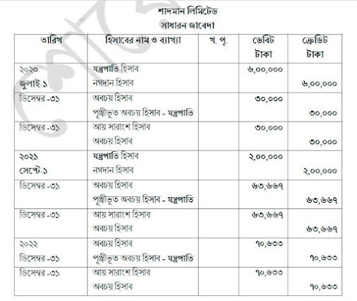 অবচয় হার (Depreciation Rate): ৪০% (ডাবল ডিক্লাইনিং ব্যালান্স পদ্ধতি অনুযায়ী)